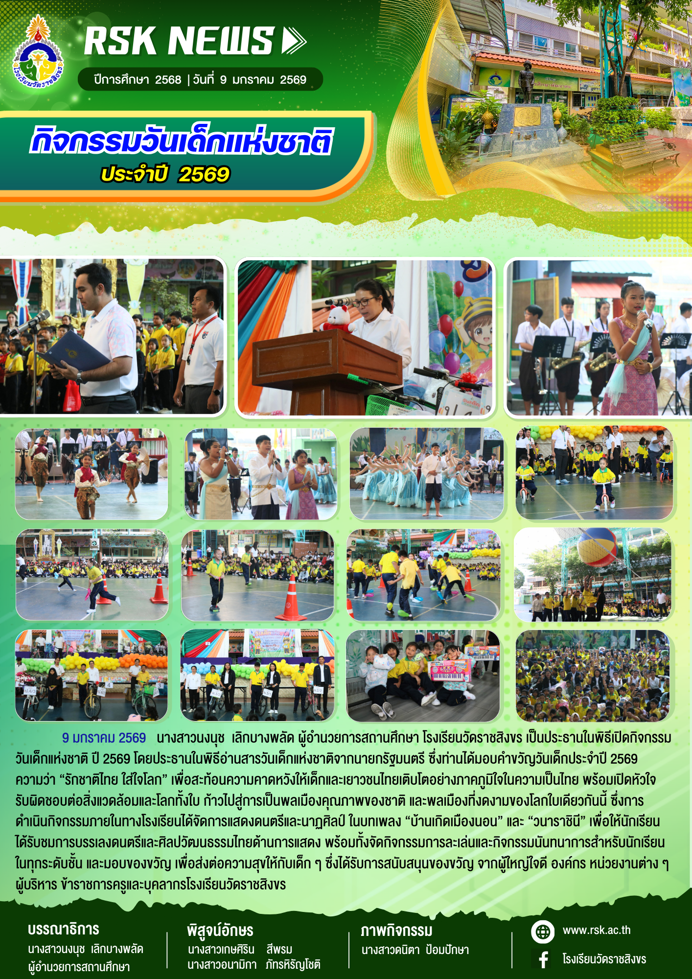 9 มกราคม 2569 นางสาวนงนุช เลิกบางพลัด ผู้อำนวยการสถานศึกษา โรงเรียนวัดราชสิงขร เป็นประธานในพิธีเปิดกิจกรรมวันเด็กแห่งชาติ ปี 2569 โดยประธานในพิธีอ่านสารวันเด็กแห่งชาติจากนายกรัฐมนตรี ซึ่งท่านได้มอบคำขวัญวันเด็กประจำปี 2569 ความว่า “รักชาติไทย ใส่ใจโลก” เพื่อสะท้อนความคาดหวังให้เด็กและเยาวชนไทยเติบโตอย่างภาคภูมิใจในความเป็นไทย พร้อมเปิดหัวใจรับผิดชอบต่อสิ่งแวดล้อมและโลกทั้งใบ ก้าวไปสู่การเป็นพลเมืองคุณภาพของชาติ และพลเมืองที่งดงามของโลกใบเดียวกันนี้ ซึ่งการดำเนินกิจกรรมภายในทางโรงเรียนได้จัดการแสดงดนตรีและนาฏศิลป์ ในบทเพลง “บ้านเกิดเมืองนอน” และ “วนาราชินี” เพื่อให้นักเรียนได้รับชมการบรรเลงดนตรีและศิลปวัฒนธรรมไทยด้านการแสดง พร้อมทั้งจัดกิจกรรมการละเล่นและกิจกรรมนันทนาการสำหรับนักเรียนในทุกระดับชั้น และมอบของขวัญ เพื่อส่งต่อความสุขให้กับเด็ก ๆ ซึ่งได้รับการสนับสนุนของขวัญ จากผู้ใหญ่ใจดี องค์กร หน่วยงานต่าง ๆ ผู้บริหาร ข้าราชการครูและบุคลากรโรงเรียนวัดราชสิงขร